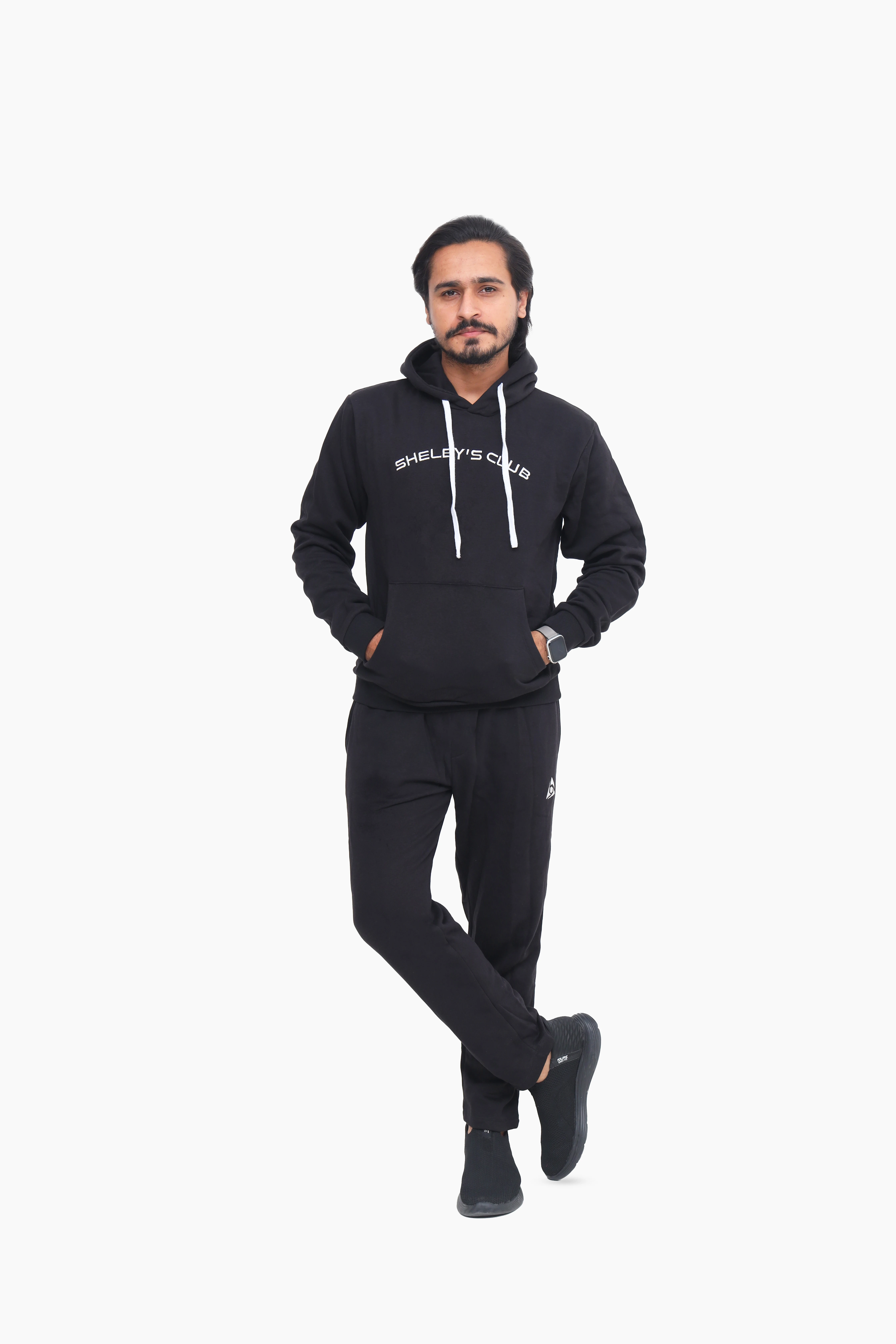Black Cotton Winter Hoodie